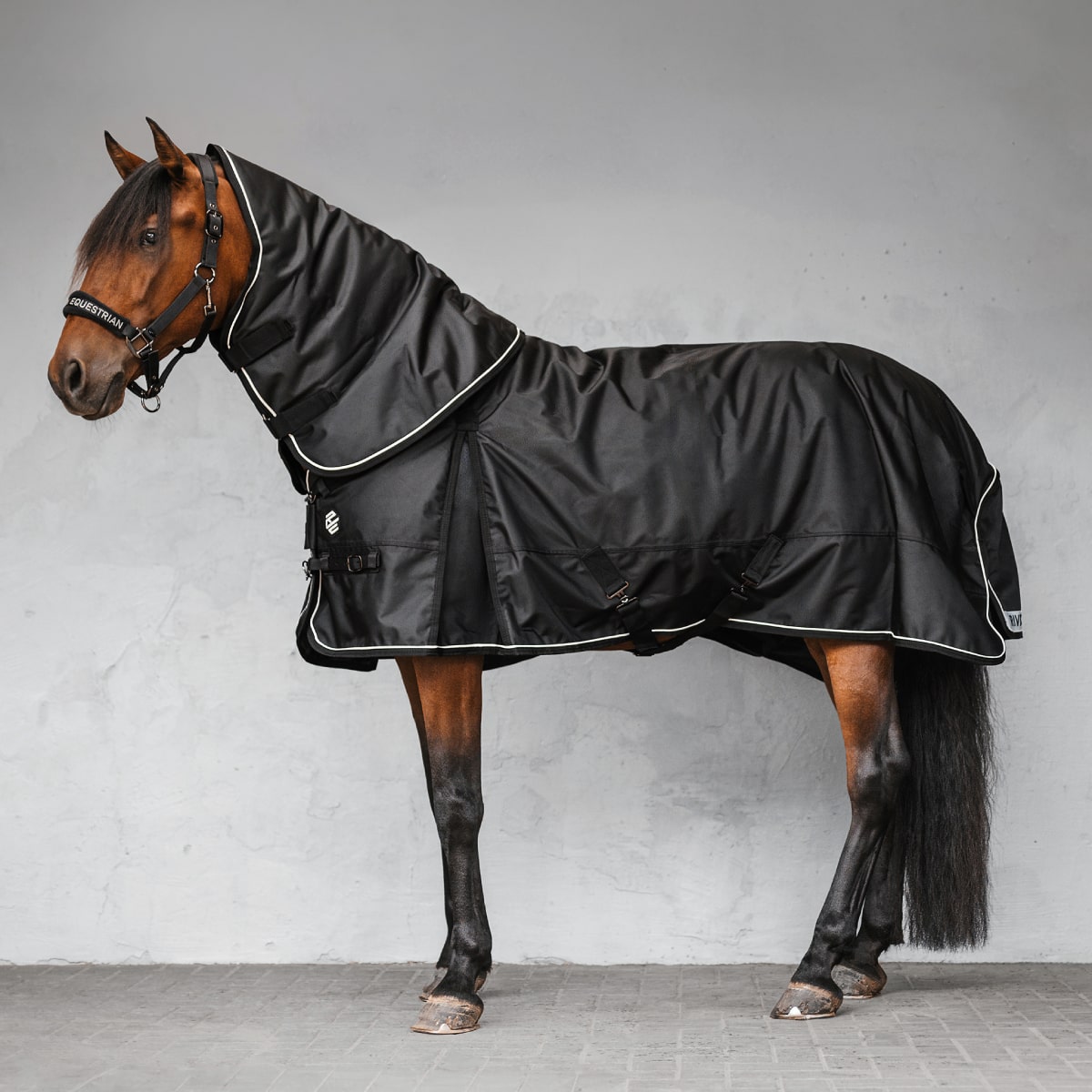 Enhance your horse’s comfort and protection with our detachable Lance turnout hood without filling.